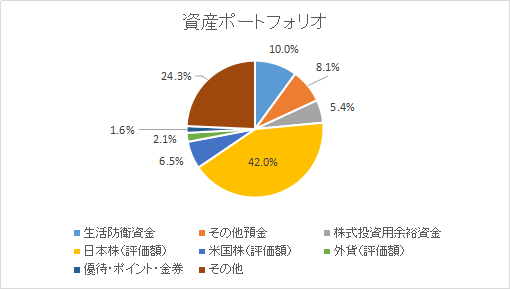 (注:株主優待は、原則資産運用への再投資ができない(証券口座内で管理できない)資産ですので、資産運用外の資産として計上しています。一部の優待がポイントに交換可能なのも理由です。)