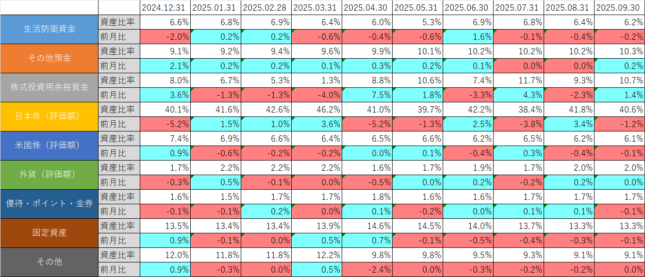 9月末時点の資産ポートフォリオが確定しましたので、ご報告です。