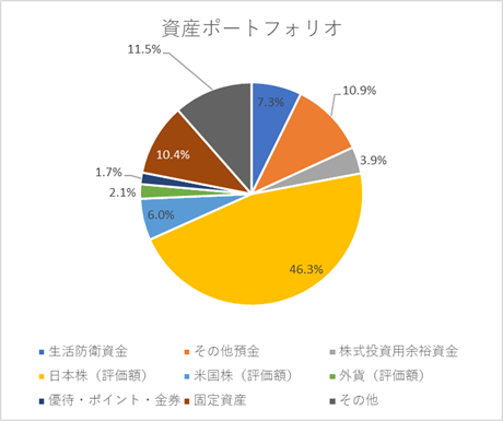 (注:株主優待は、原則資産運用への再投資ができない(証券口座内で管理できない)資産ですので、資産運用外の資産として計上しています。一部の優待がポイントに交換可能なのも理由です。)
