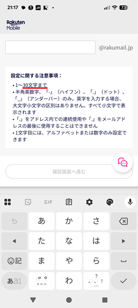 こうなったら、楽天モバイルを契約していながらも、セキュリティの観点から長くて覚えやすいメールアドレスにしたいものの名案が思いつかず利用していなかった「楽メール」の出番です。前述の状況に気付いてしまった以上、「いいメールアドレスが思い浮かばない」とか言っている場合ではありません。